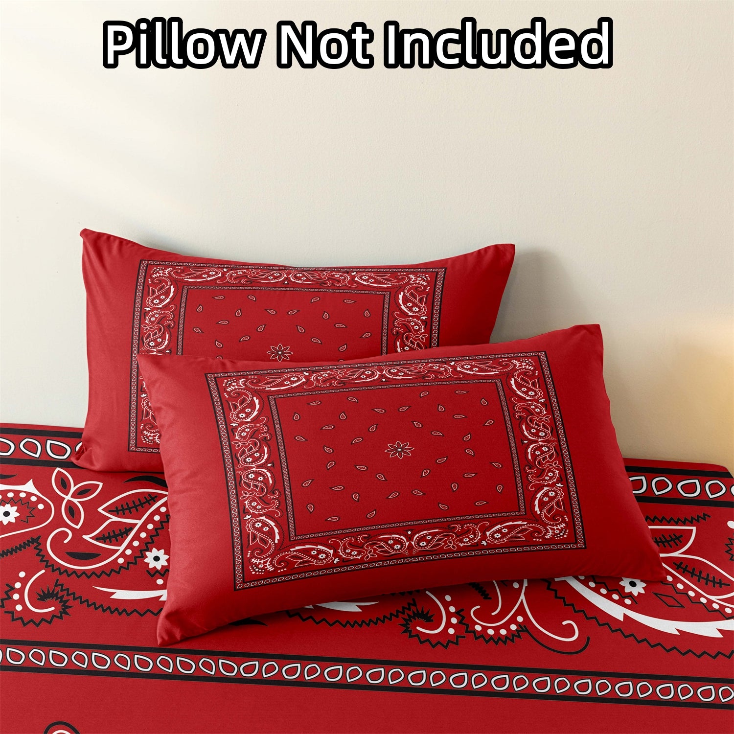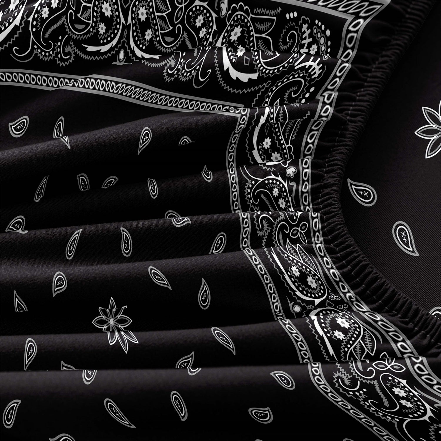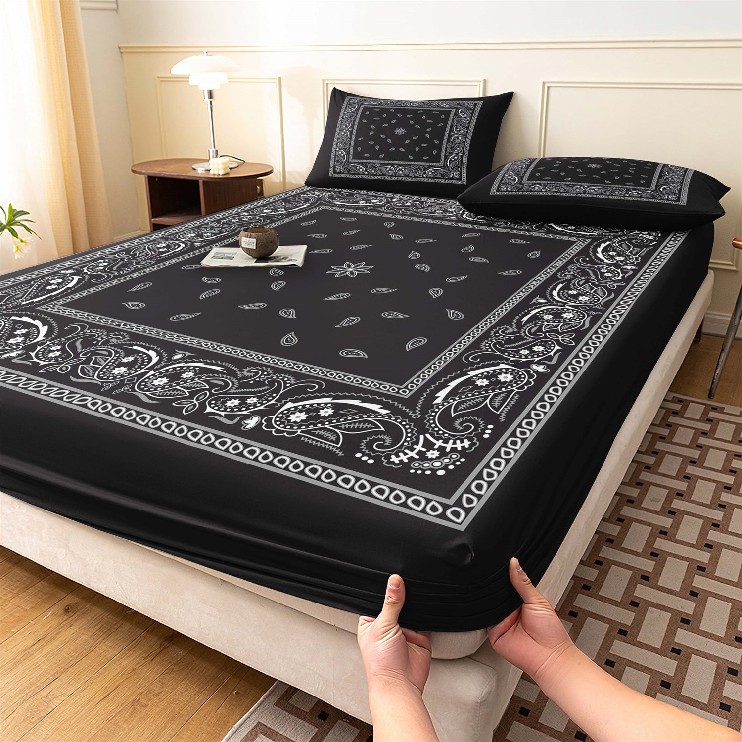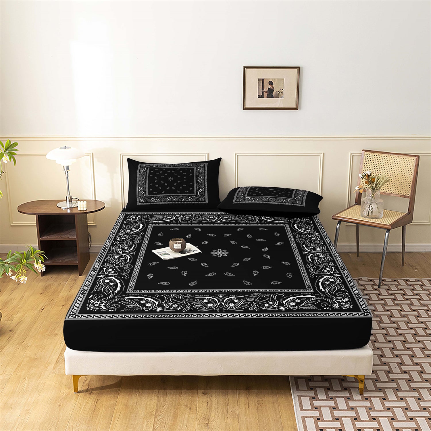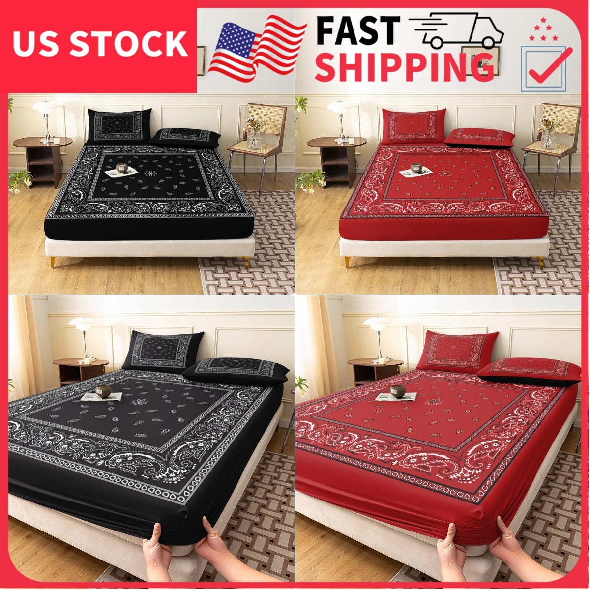 3Pcs Black & Red Boho Bandana Paisley Fitted Sheet