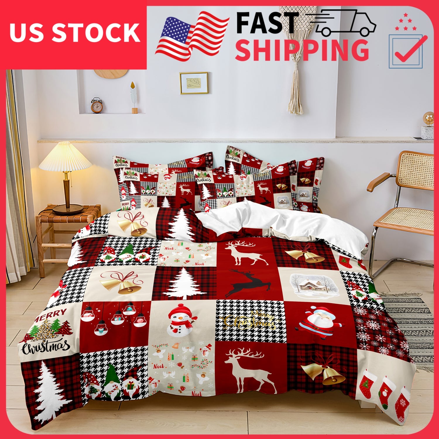 3Pcs Christmas Theme Santa Snowman Tree Elk Snowflake Checked Duvet Cover