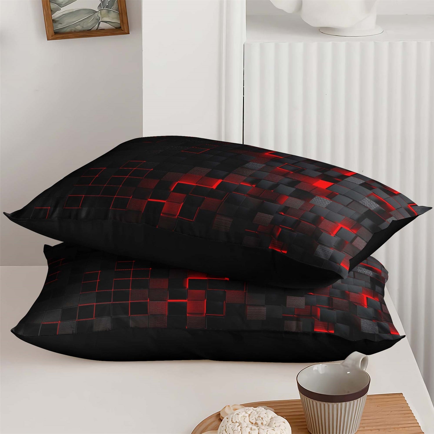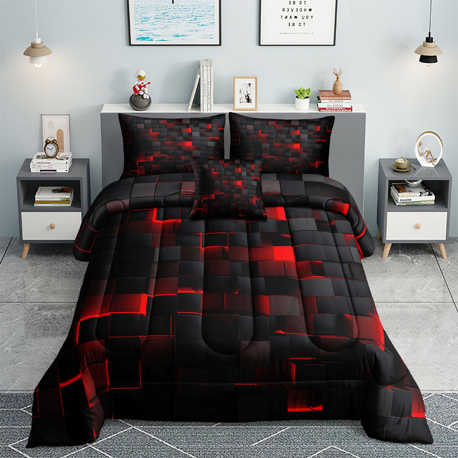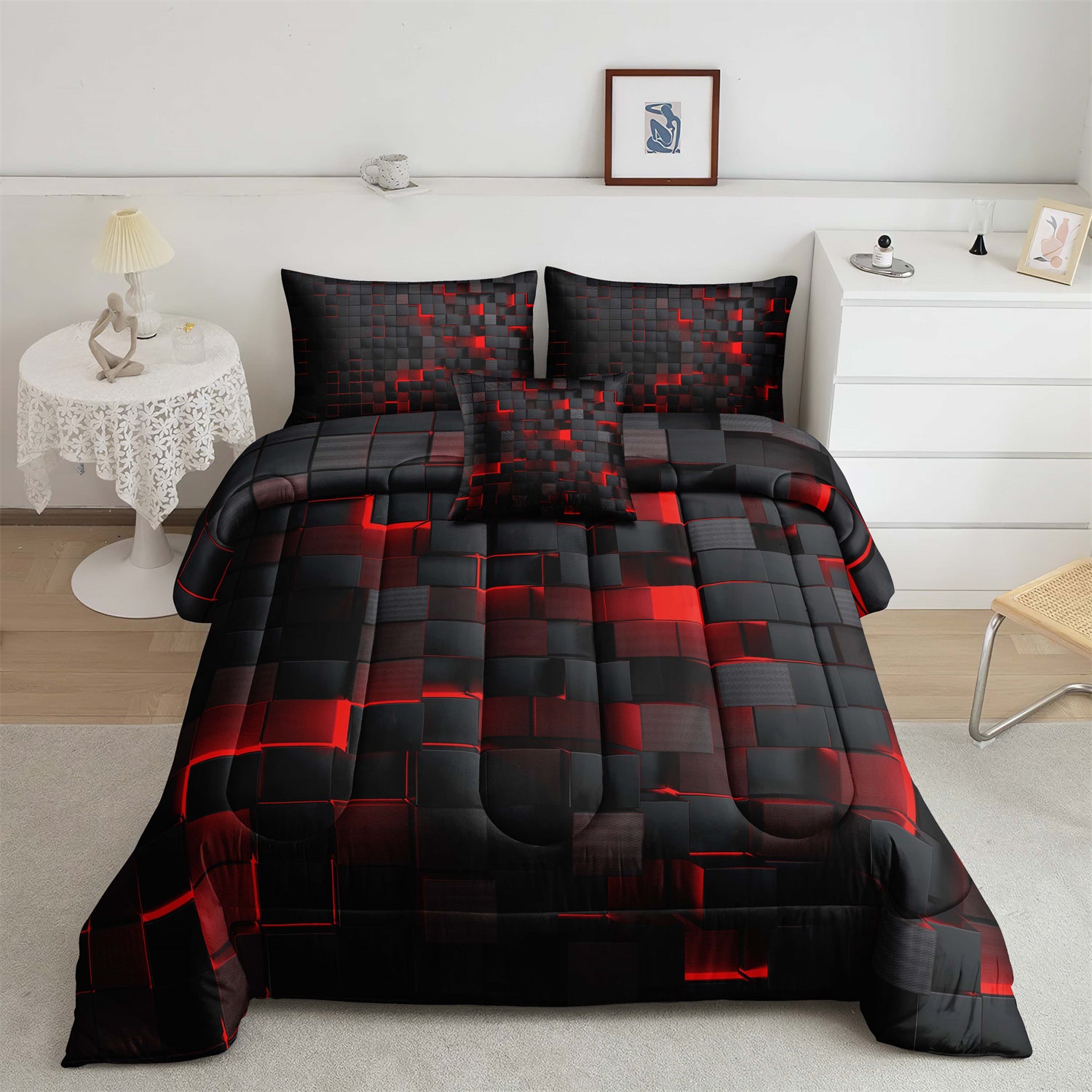 [High Quality]: The Geometric Red Black quilt is made from 100% microfibre as the surface fabric and 100% polyester as the filling, which gives the quilt long-lasting softness and great breath ability. In addition, super soft, lightweight, breathable and great for all seasons.