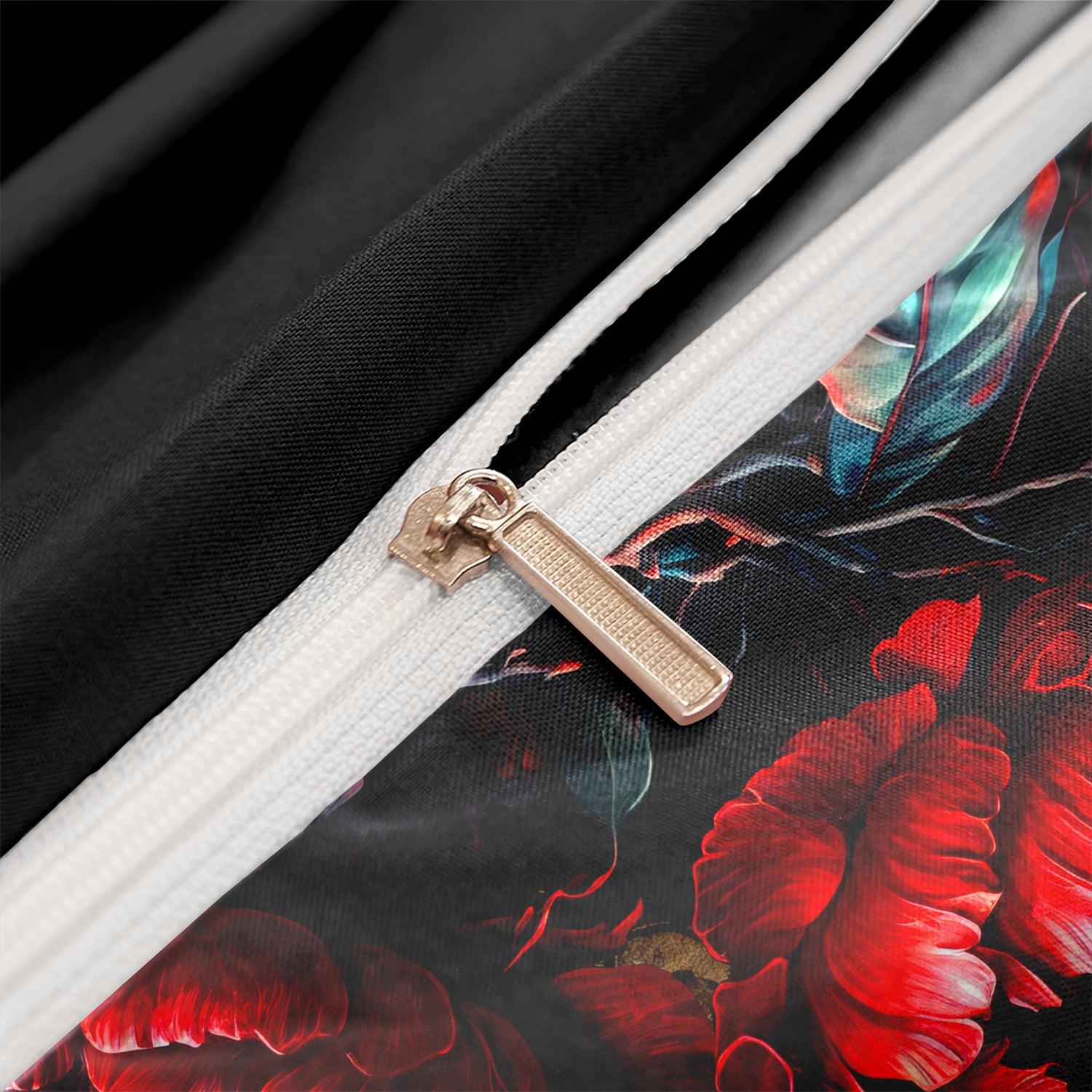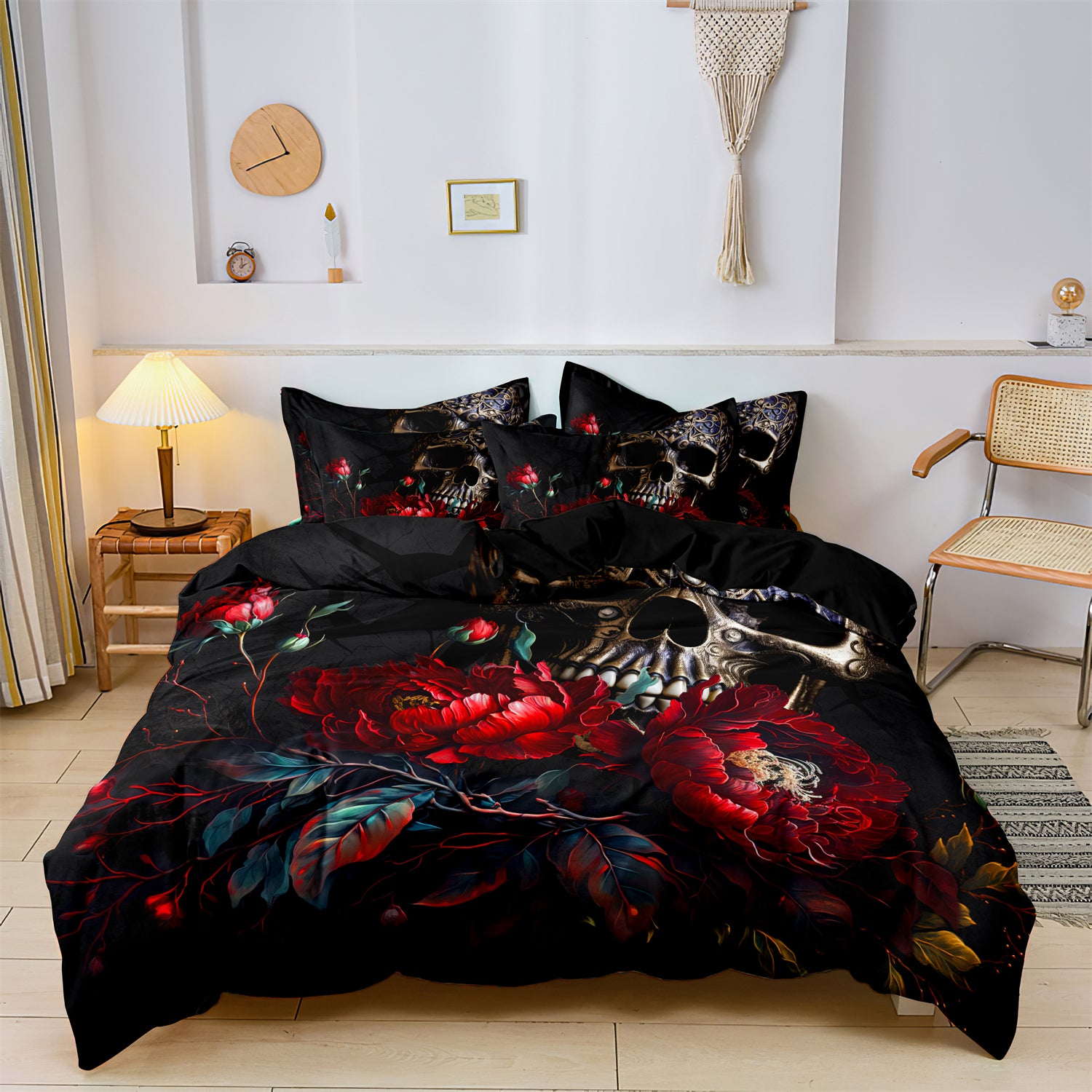 3Pcs Gothic Skull Floral Duvet Cover Bedding Set
