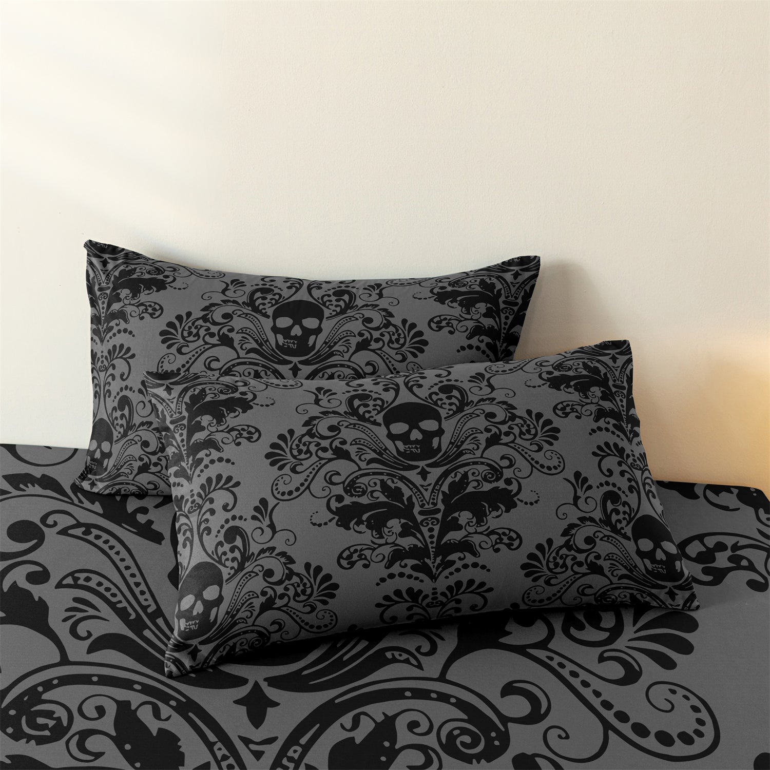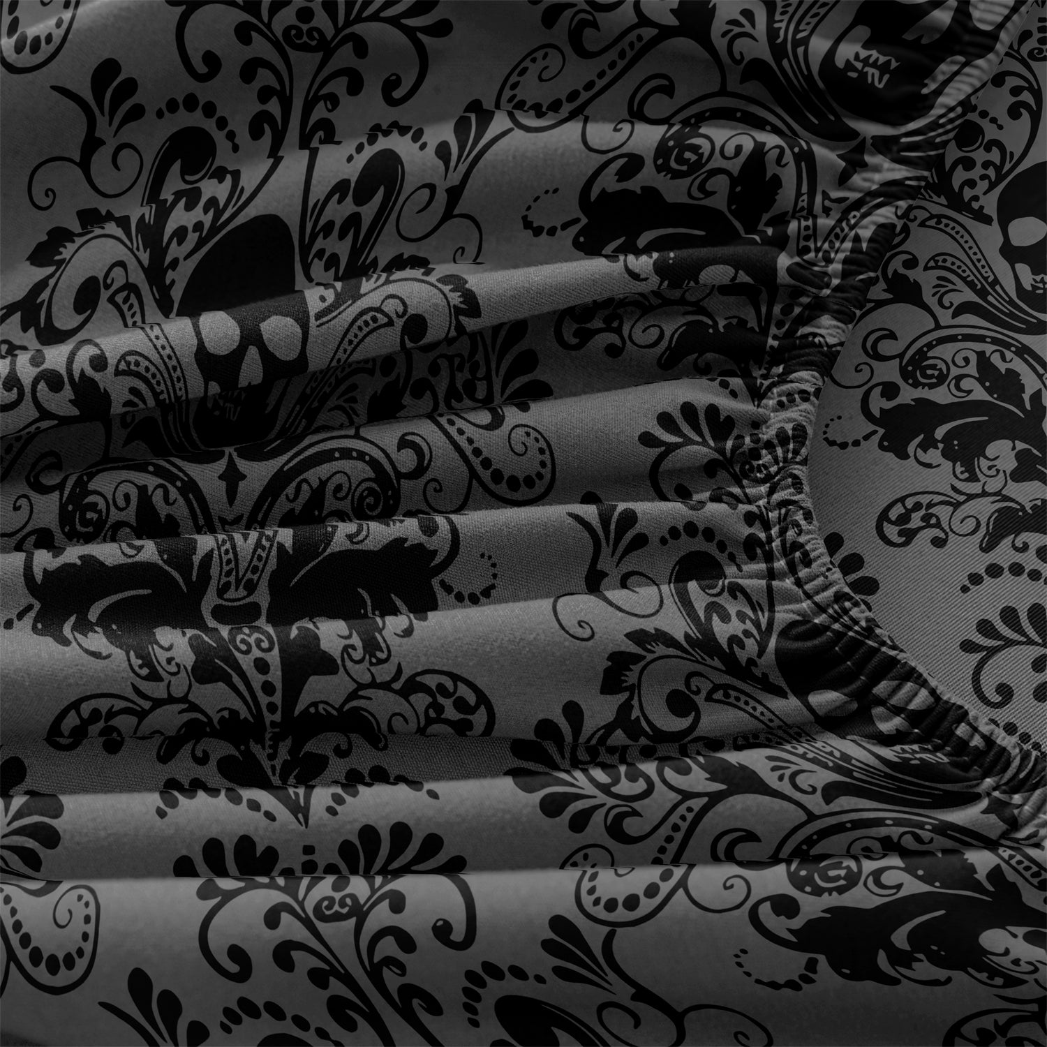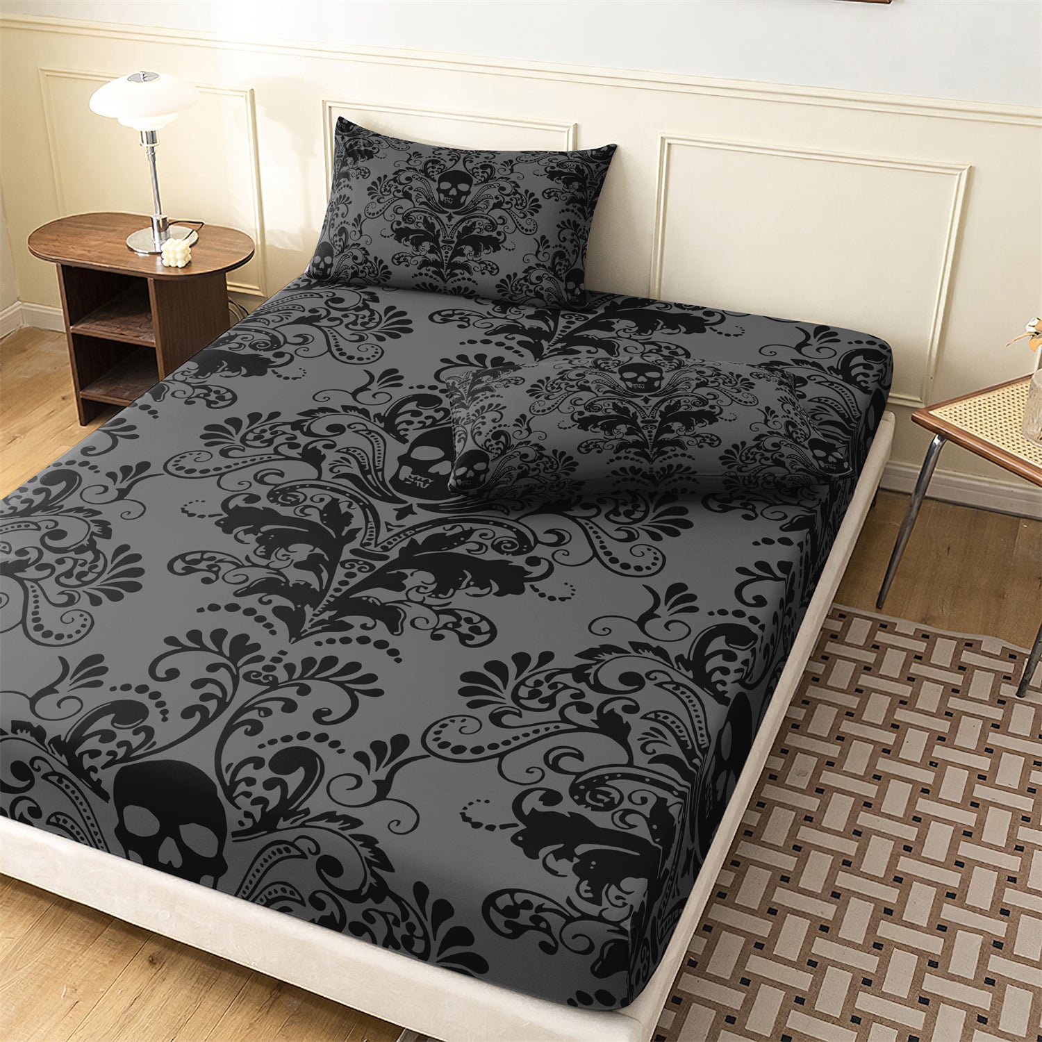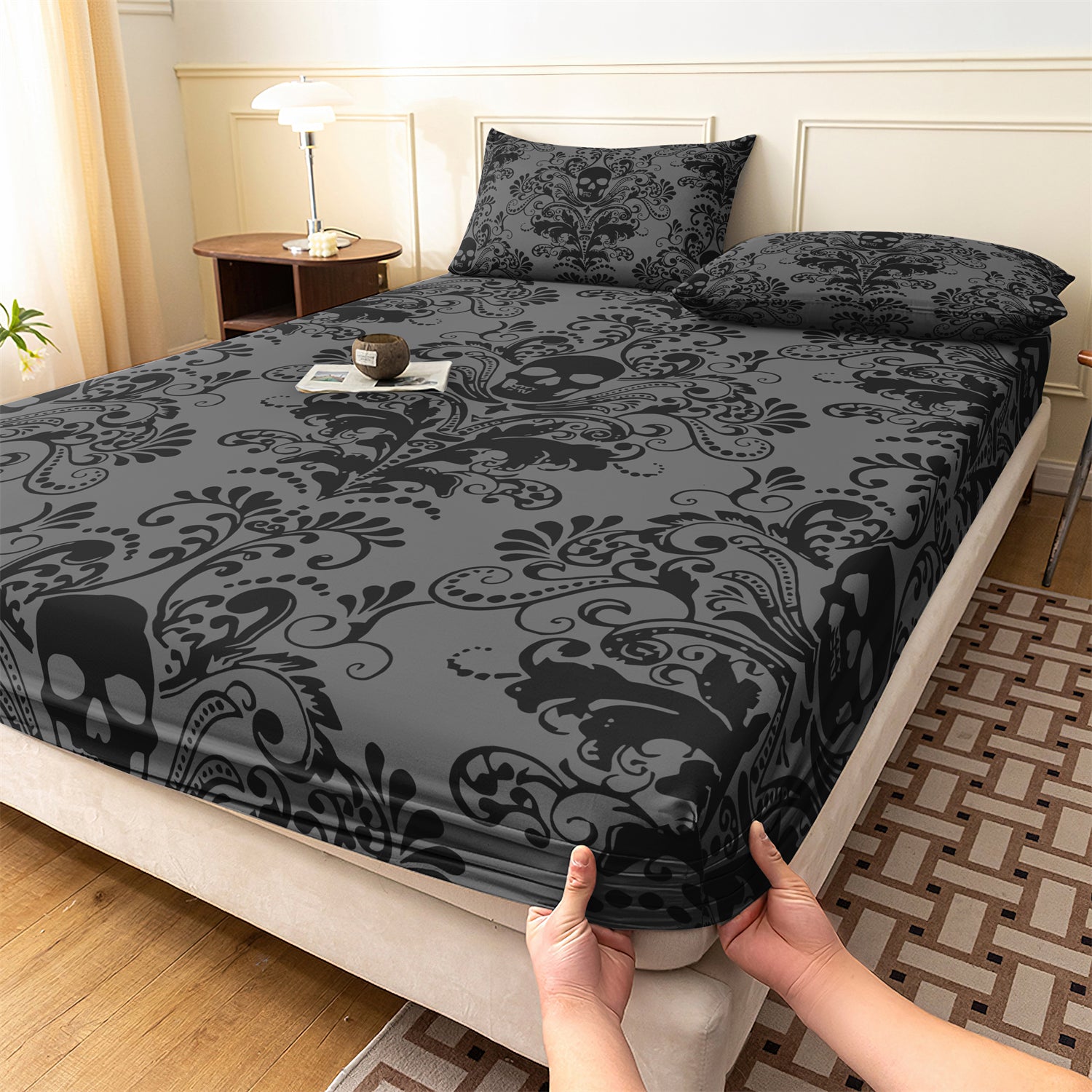3Pcs Skull Floral Bed Sheet Fitted Set