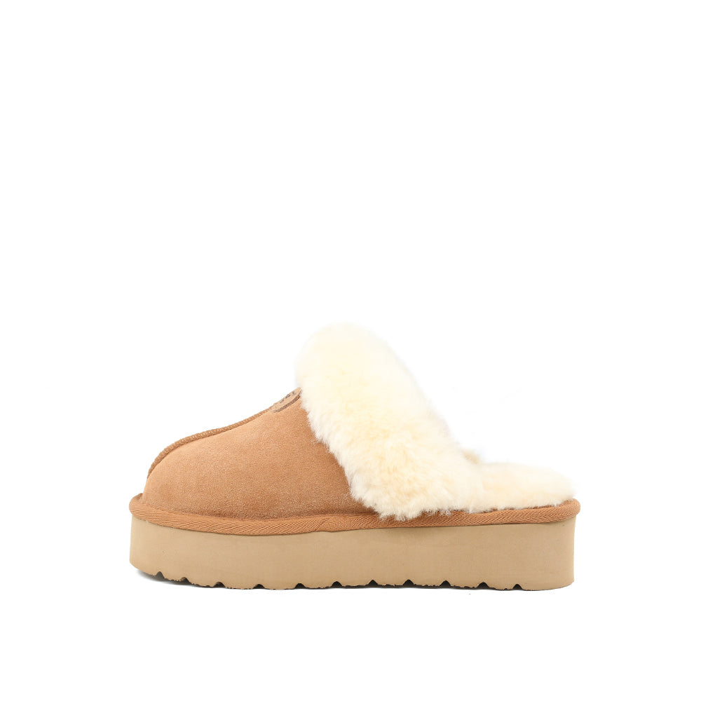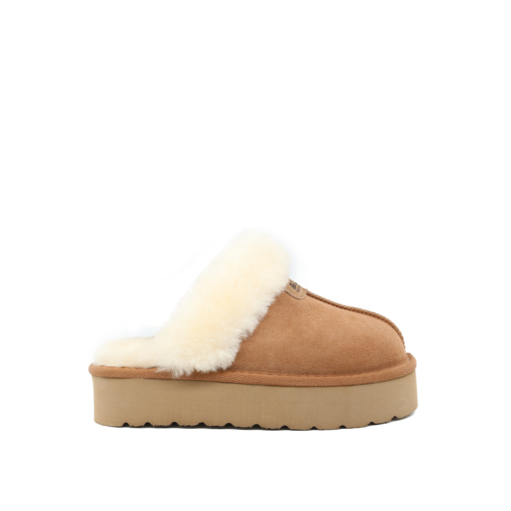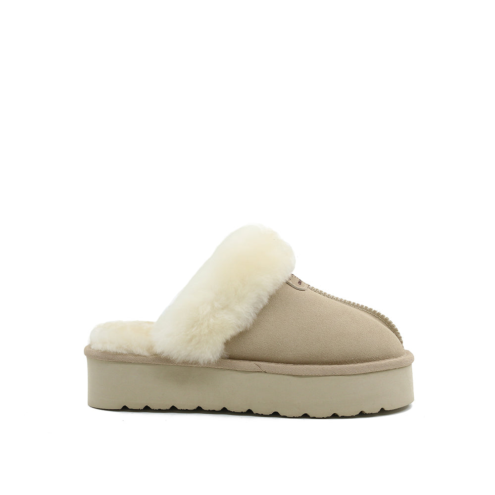Comfort and style meet with these Premium Platform Scuff! Get the luxurious foundation your feet crave from these high-quality Australian sheepskin slippers. With a platform sole for added height and a stylish look, you'll feel like royalty lounging in these. Made from premium materials that are sure to last even with everyday wear, there's a no better option for keeping your feet warm, cozy, and happy during those cold nights at home. Step out of the ordinary and embrace luxury with these Premium Platform Scuff!